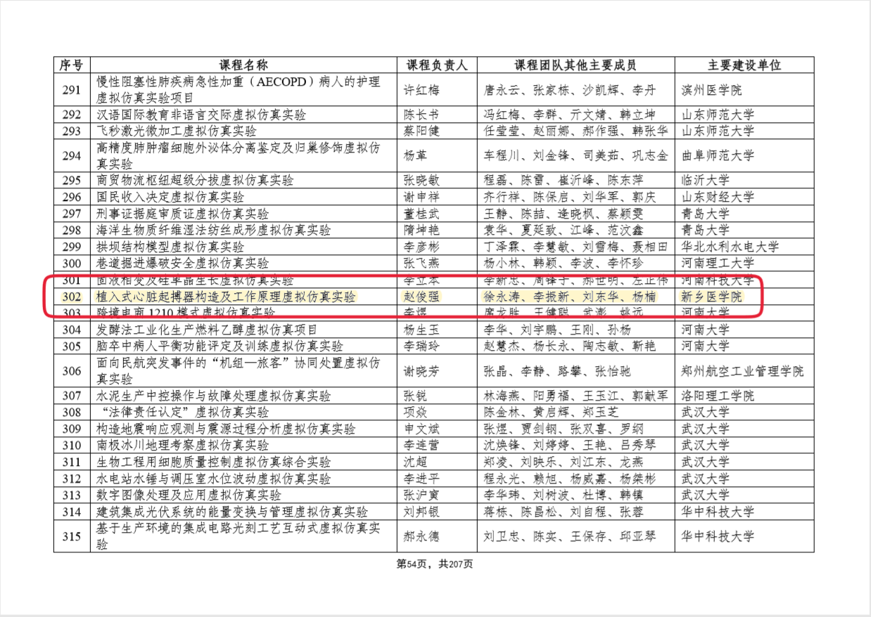 近日,根据教育部关于公布第二批国家级一流本科课程认定结果的通知,我院院长赵俊强副教授负责的《植入式心脏起搏器构造及工作原理虚拟仿真实验》获批虚拟仿真实验教学一流课程。