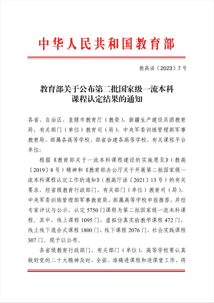 此次评选是根据《教育部关于一流本科课程建设的实施意见》(教高〔2019〕8号)精神和《教育部办公厅关于开展第二批国家级一流本科课程认定工作的通知》(教高厅函〔2021〕13号)的有关要求,经省级教育行政部门、有关部门(单位)教育司(局)、中央军委训练管理部军事教育局、部属高等学校申报推荐,并经专家评议与公示,认定5750门课程为第二批国家级一流本科课程。其中,线上课程1095门,虚拟仿真实验教学课程472门,线上线下混合式课程1800门,线下课程2076门,社会实践课程307门。