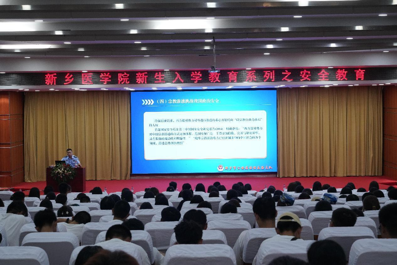9月12日晚,全体新生在第三教学楼第一报告厅参加新生入学安全教育讲座。新乡市公安局国保反恐支队政委刘长保作为主讲人,长期在公安基层一线工作,具有深厚的理论功底和丰富的实践经验,是市公安局特聘兼职教官、河南省反邪教专家库成员。刘长保以总体国家安全观为指导,分享了当前我国国家安全各方面面临的最新形势及应对,对同学们进行了国家安全和网络安全教育。通过这次讲座,新生们对国家安全有了更新更深入的理解,明白了维护国家安全的重要性,树立了安全责任意识。