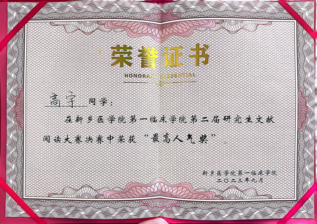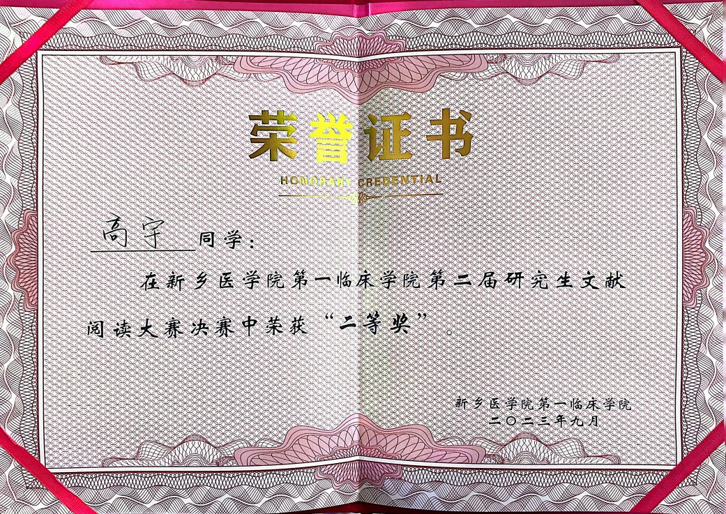我院高宇同学在第一临床学院第二届研究生文献阅读大赛上喜获佳绩