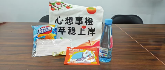 学院为每位考研学子准备了印有“心想事‘橙’,‘苹’稳上岸”的专属帆布包——“橙”谐音“成”,寓意“一战成硕”;“苹”谐音“平”,既祝愿备考节奏稳扎稳打、考场发挥沉稳从容,也暗合医学生未来从医所应秉持的“稳慎笃行”职业初心,时刻铭记“健康所系,性命相托”的入学誓言。