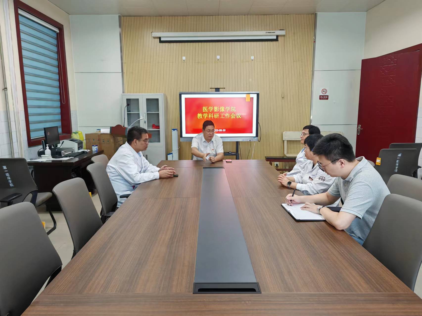 8月30日,我院教学科研工作会议于影像楼三楼会议室召开。院党总支书记、院长赵俊强主持会议,副院长韩东明、第一附属医院医学影像学部主任兼放射科主任梁长华、综合办公室主任兼影像诊断学教研室主任岳军艳、综合办公室副主任钱思齐出席会议。
