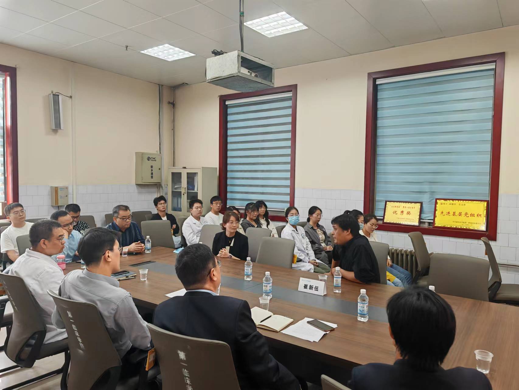 赵俊强对崔新伍来我院考察交流表示欢迎,介绍了我院发展沿革及近年来取得的成绩,希望双方能够就人才引进与培养等方面的工作进行深入交流,建立良好的合作关系。吕晖就第一附属医院临床与科研结合,及医院科研管理与能力提升等方面分享了思路。