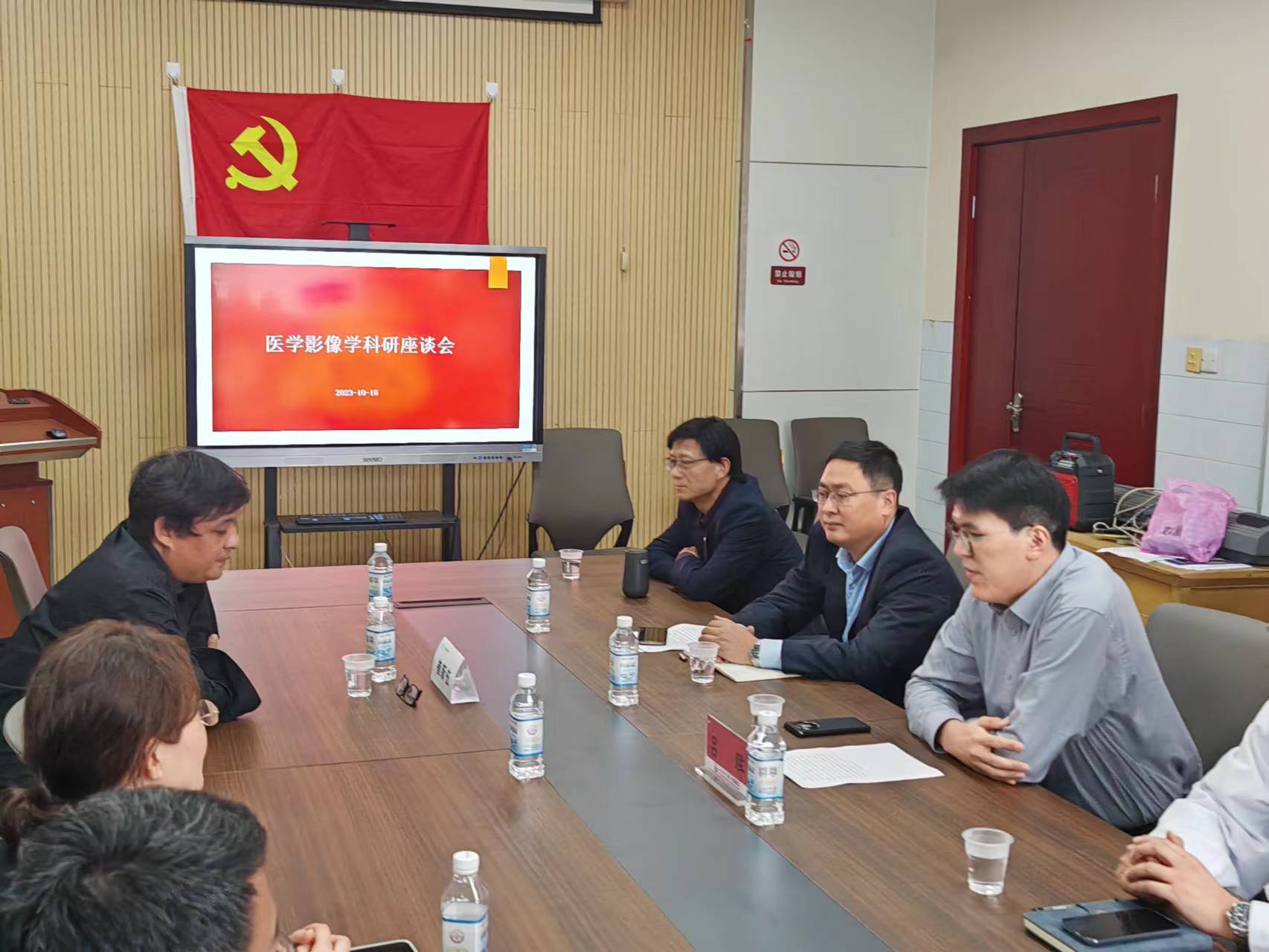 10月18日,我校优秀校友、华中科技大学附属同济医院超声影像科主任、博士生导师崔新伍教授来我院进行科研工作交流座谈。座谈会在影像楼三楼会议室举行。院党总支书记、院长赵俊强,第一附属医院党委委员、副院长吕晖,副院长韩东明,医学影像学部主任、放射科主任梁长华,核磁共振科主任闫瑞芳,影像诊断学教研室主任、院综合办主任岳军艳,超声科主任李冉,核医学科主任赵志勇,科研部副部长崔红凯,核磁共振科副主任任继鹏,院综合办公室副主任钱思齐出席。我院全体研究生参加了座谈。