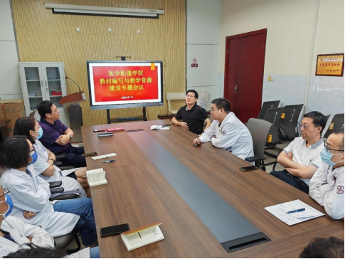 为加强我院教学资源建设,提升课程质量,推进专业教材编写工作,7月11日下午,我院在影像楼三楼会议室召开教材编写与教学资源建设专题会议。党总支书记、院长赵俊强,副院长韩东明,各在院科室主任、副主任出席会议。会议由赵俊强主持。