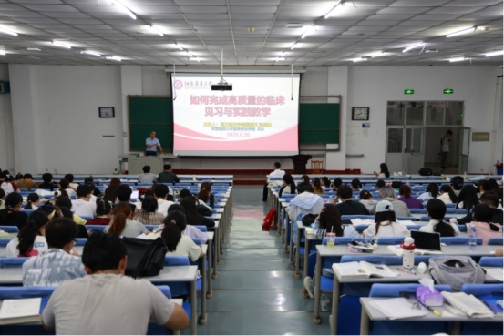 大会伊始,赵俊强详细介绍了见习、实习的准备和规划工作。接着,赵晓生结合自身从教经验,从专业学习、安全意识、时间管理、职业规划等多个维度,强调了临床见习的纪律要求和医德塑造,为同学们分享了宝贵的实践经验。