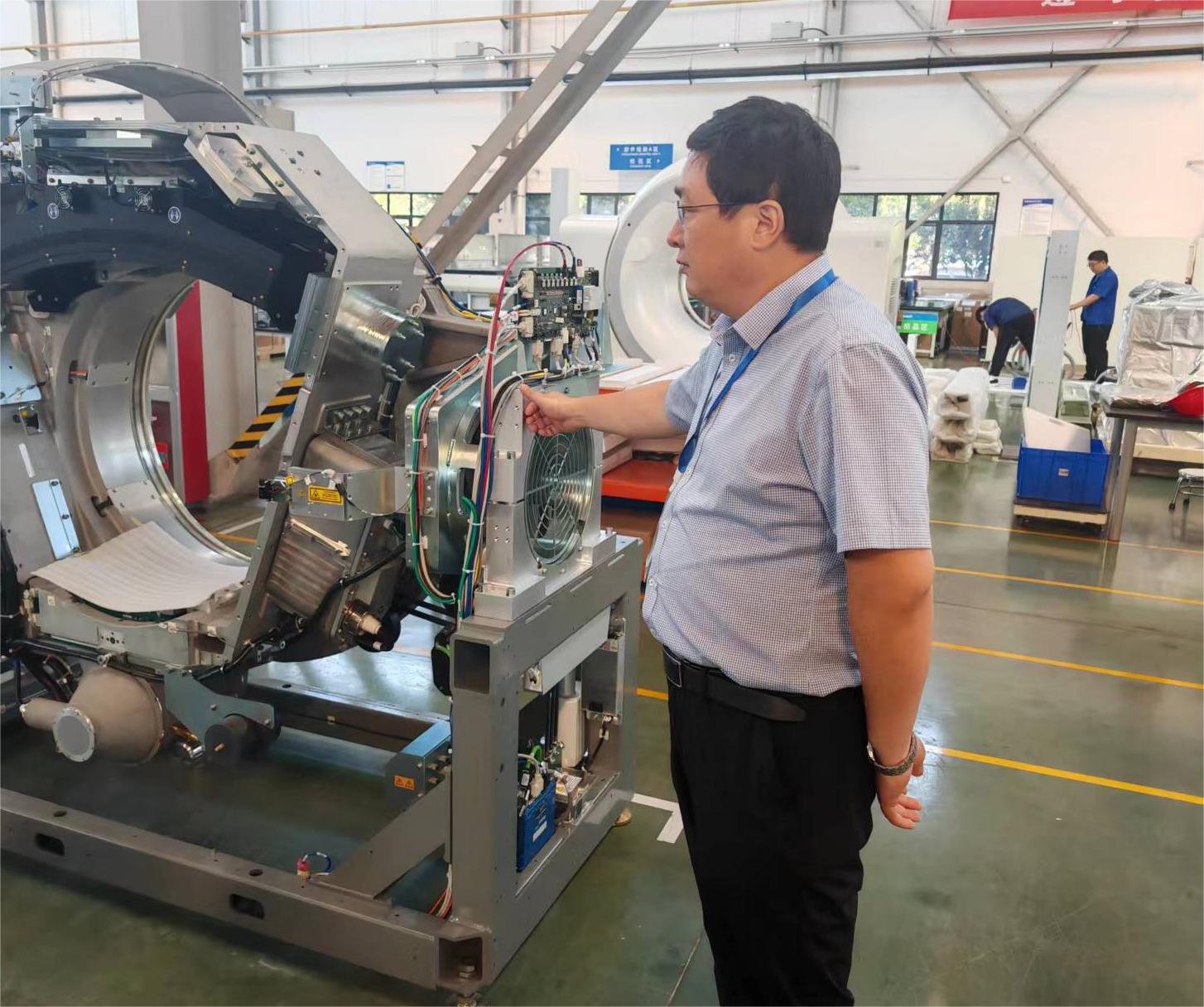 赵俊强一行先后参观了新华医疗放射诊疗事业部的办公区、工作车间等场所,深入了解新华医疗发展历程和创新发展情况。新华医疗销售部负责人王波、放射诊疗事业部教学产品负责人刘洪志对赵俊强一行到访表示热烈欢迎,介绍了新华医疗产品矩阵和最新技术,也愿意为我院学子提供更多实习和就业机会,加强毕业生就业合作。