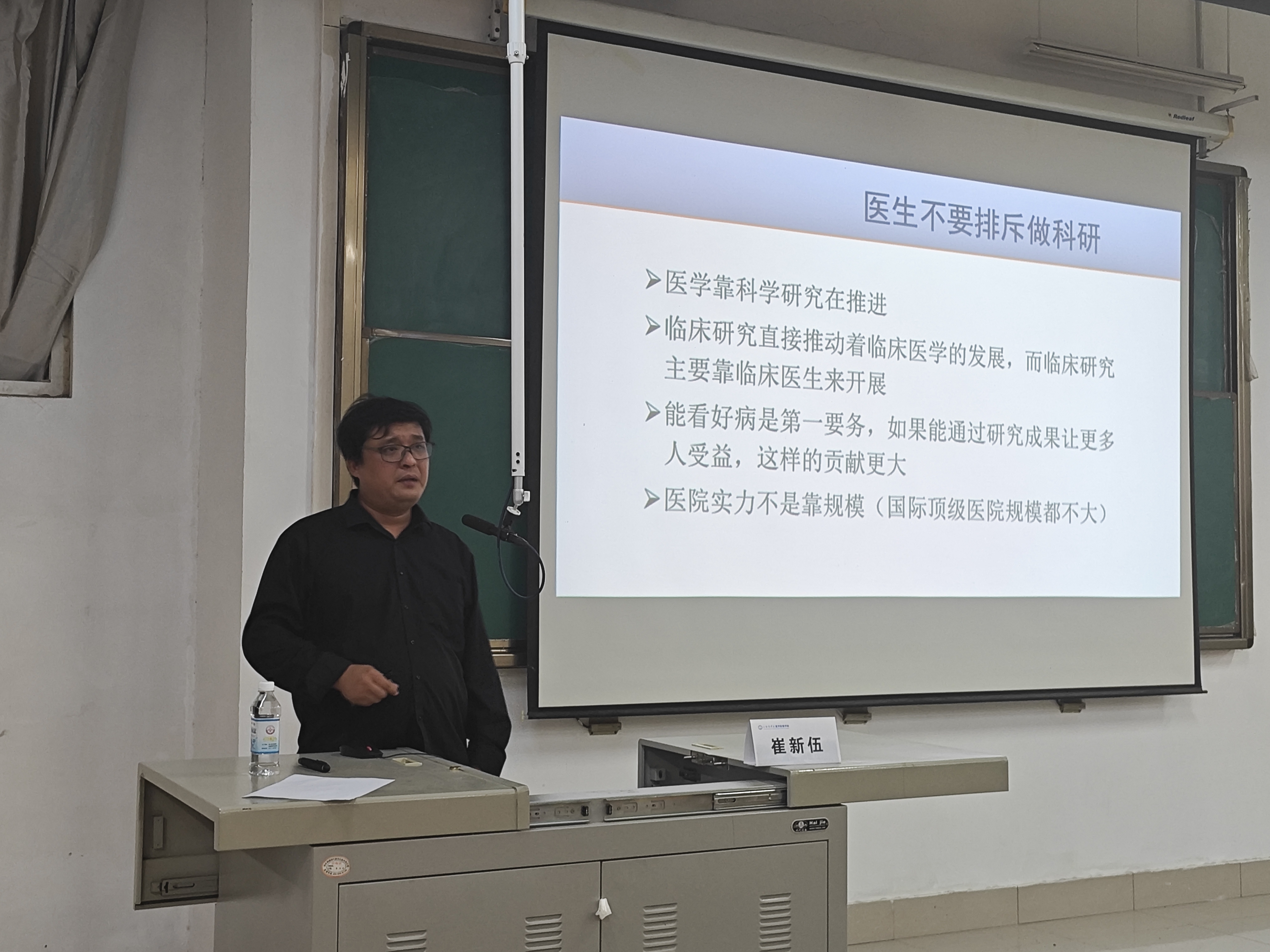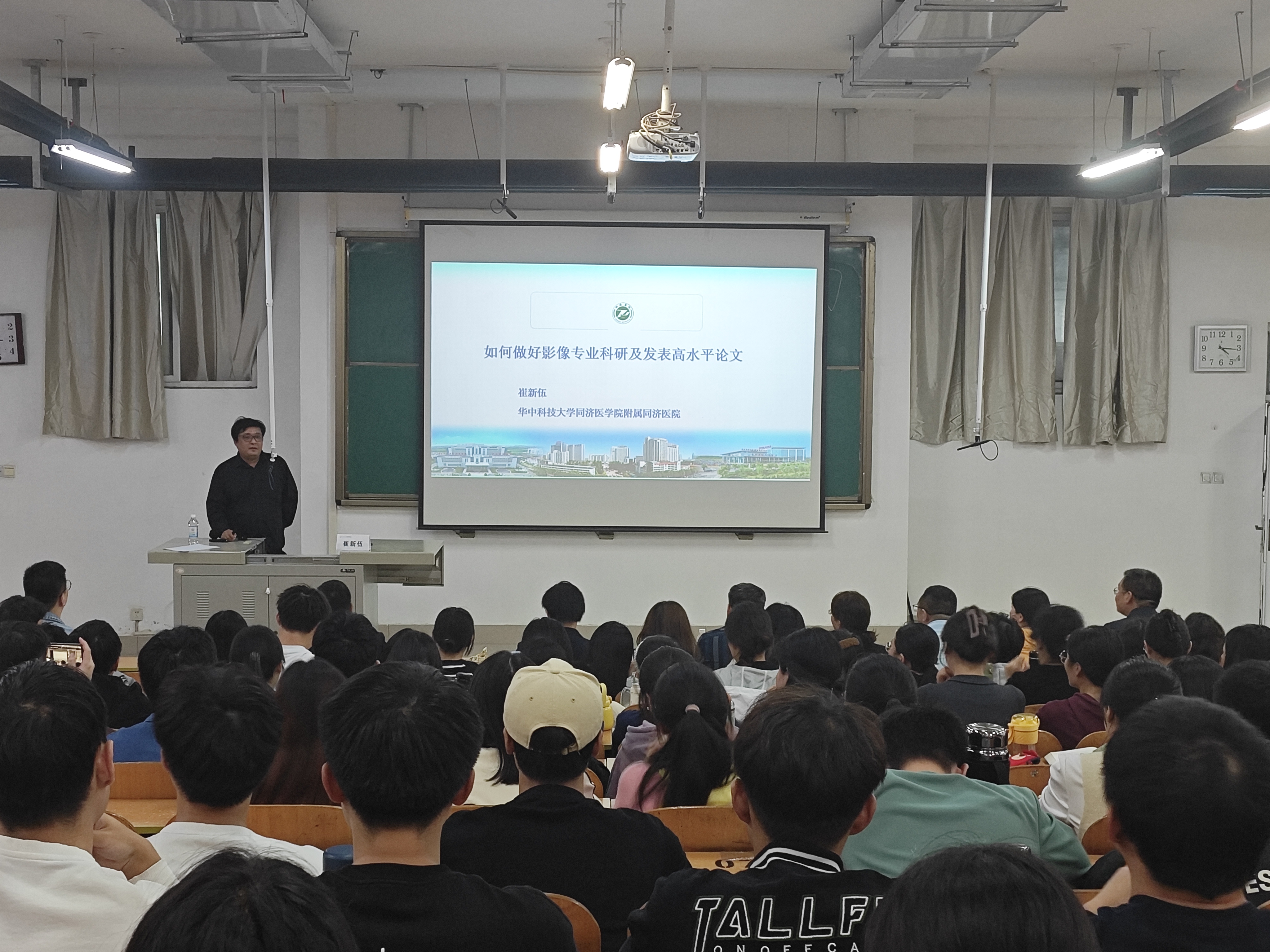 10月18日下午,我院在卫辉校区教学楼1204教室举办了题目为“如何做好影像医学科研及发表高水平论文”的学术讲座,我校2002级优秀校友、华中科技大学附属同济医院超声影像科主任、博士生导师崔新伍教授作为主讲人,为在座的师生们分享他丰富宝贵的科研经验。院党总支书记、院长赵俊强、各临床科室及教研室主任出席,我院卫辉校区全体学生参加了活动。