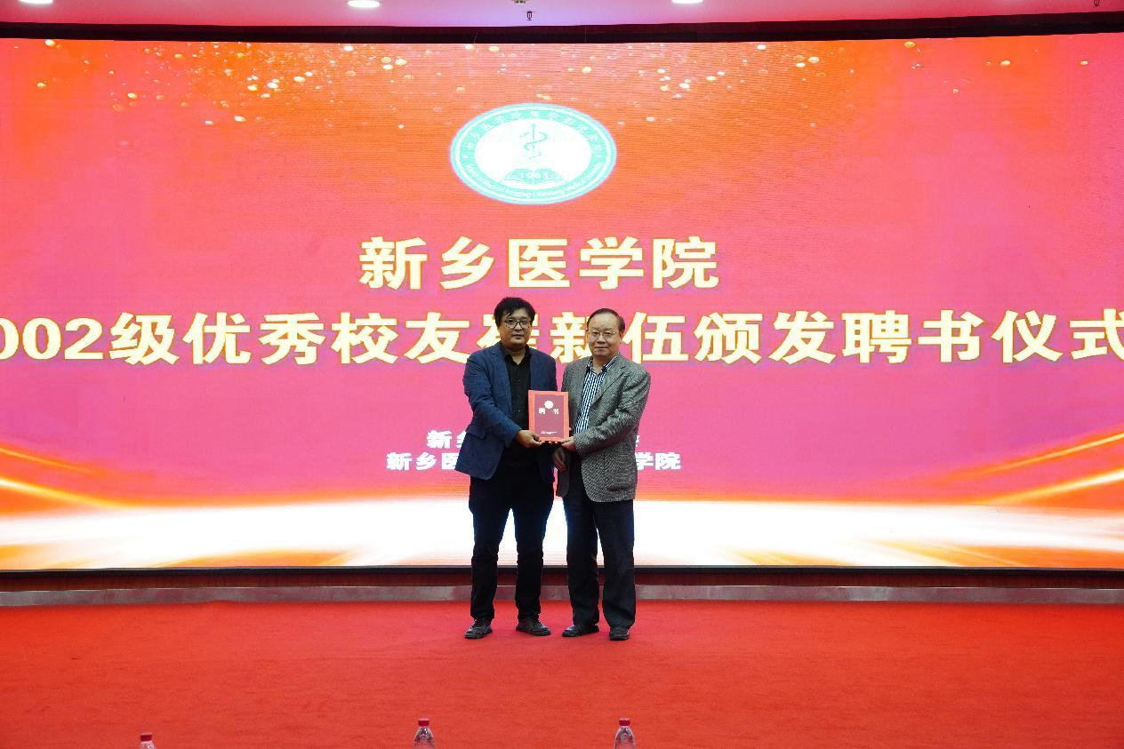 讲座结束后,王辉为崔新伍颁发聘书,聘任他担任我校医学影像学院校友会副会长。崔新伍表达了感谢,并表示将继续做好校友的组织联络工作,为母校的发展共同努力、添砖加瓦。