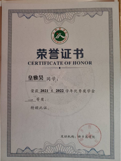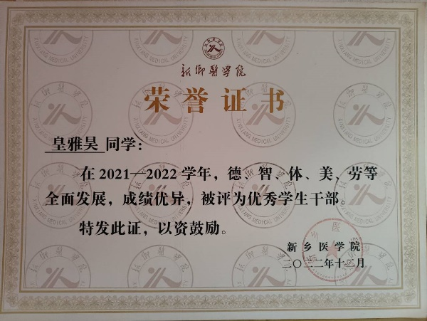 皇雅昊,男,就读于2021级影像二班,现担任2021级医学影像学年级长。