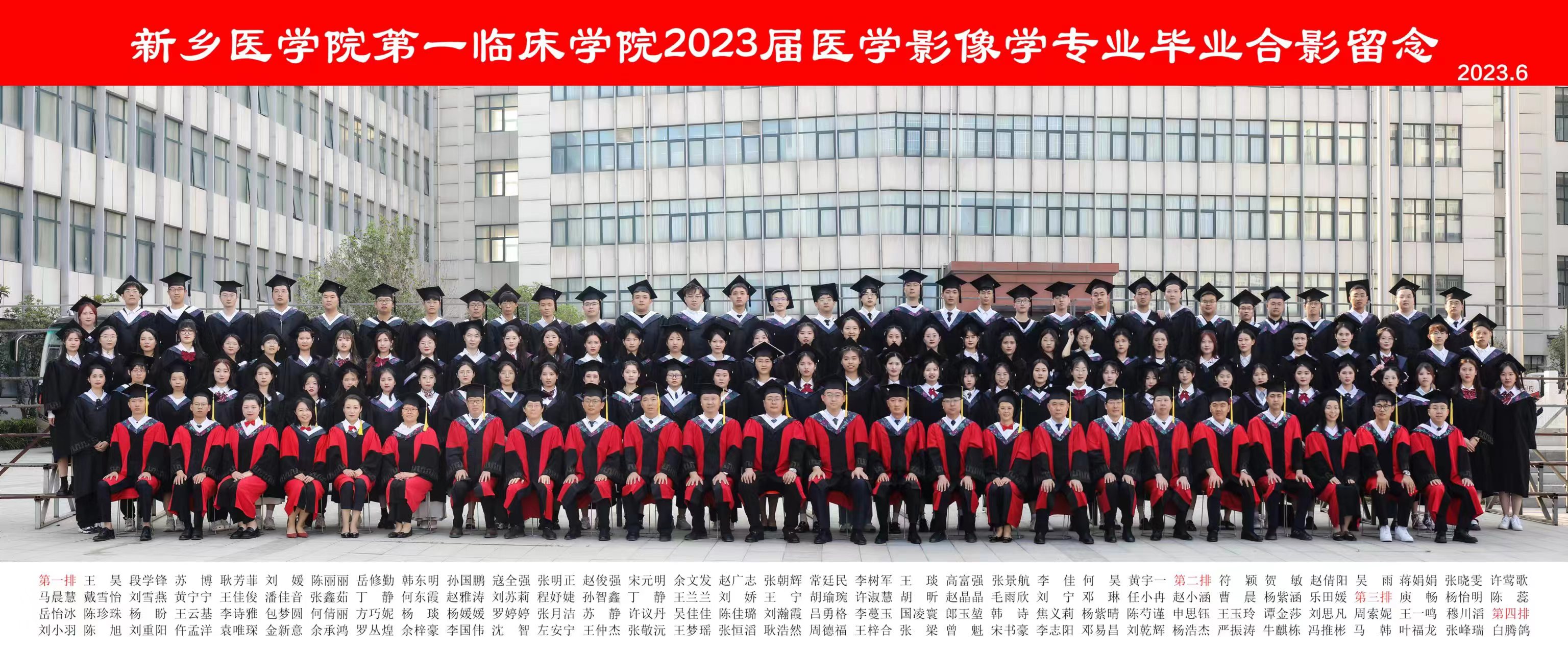 现有本科在校生800余人,教职工200余人,其中教授5人、副教授22人,中级职称54人,硕士生导师9人,博士28人,硕士42人。第一临床学院医学影像学部教师队伍共67人,其中正高职称4人,占6.0%,副高职称23人,占34.3%;具有博士学位3人,占4.5%,具有硕士学位教师39人,占58.2%;35岁及以下青年教师20人,占29.9%,36至45岁教师30人,占44.8%,46岁(含)以上教师17人,占26.2%。现有专职教师最高学位获得单位分布于国内23所高等院校和科研机构,其中13人毕业于211大学,占20%,1人毕业于985大学,占1.5%。本专业100%的教师在其学习经历中至少有一个为医学影像学相关专业,93.8%的教师具有执业医师资格。多人获得河南省优秀医师、河南省文明教师、河南省教育厅学术技术带头人、河南省青年骨干教师、“三育人”、先进工作者、优秀共产党员等荣誉称号。